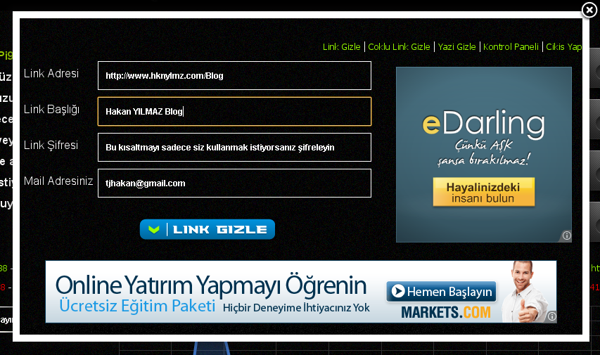 Link eklemek istediğinizde böyle sayfa açılıyor ve eğer üye değilseniz linki gizliyorsunuz ve mail adresinize mail geliyor oradan işleminize devam ediyorsunuz. Eğer üye iseniz kontrol panelinden işlem yapabiliyorsunuz.